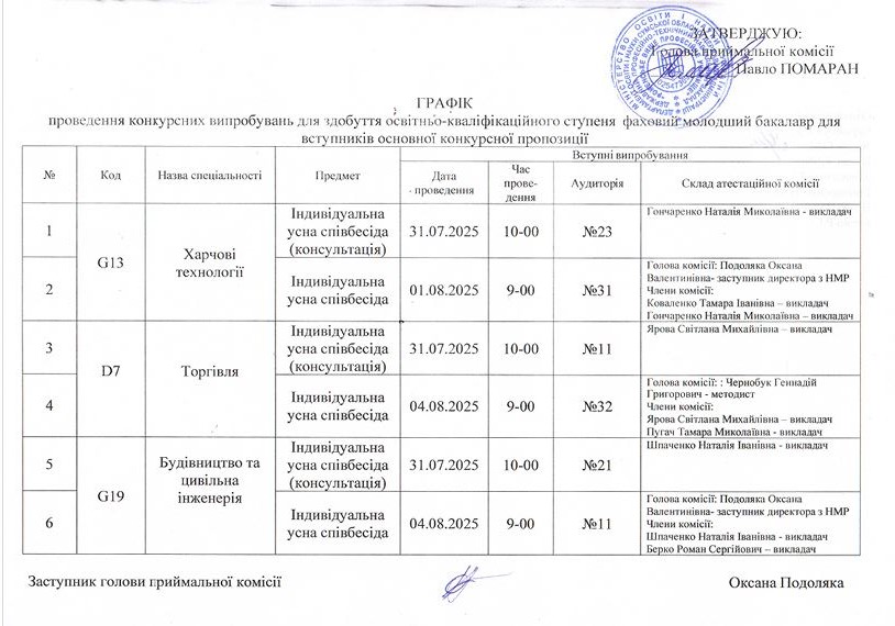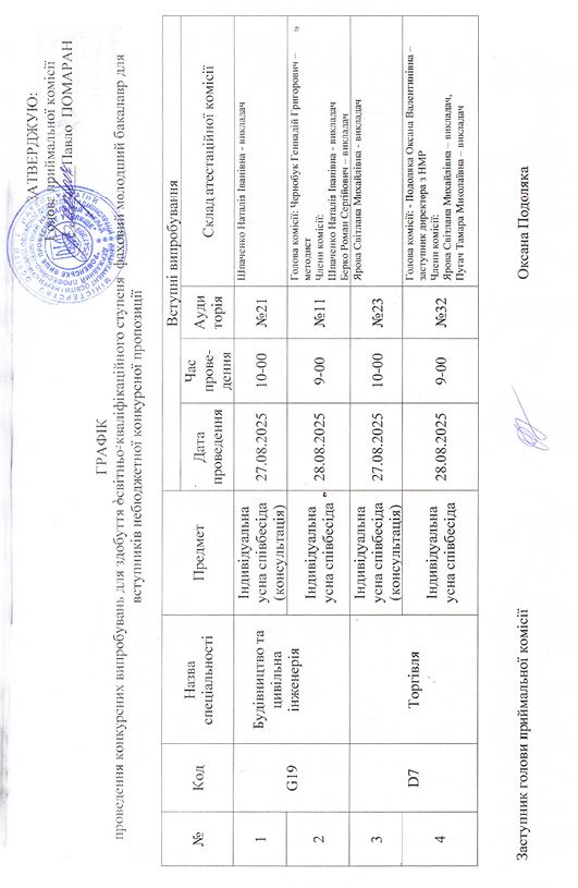 Графік проведення конкурсних випробувань